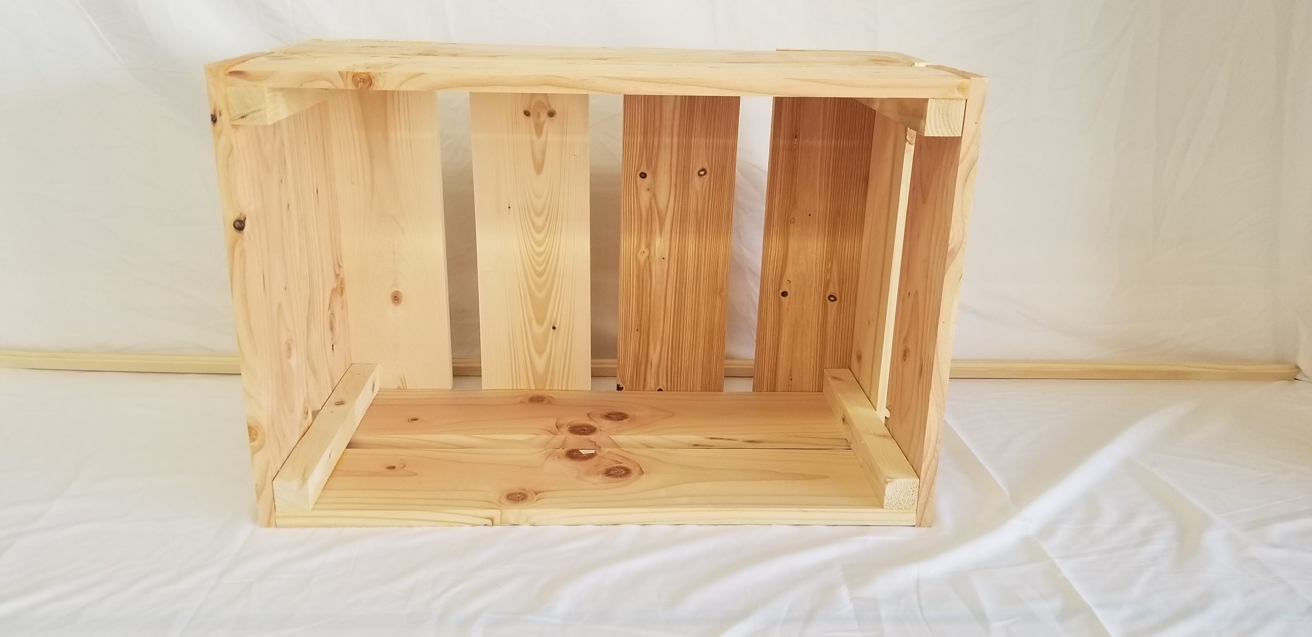 These crates are heavy duty and built well. These are much better than the ones found in the store. You can use them to create shelves. Or just use them as crates. They can be painted or stained to match your decor.